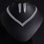 This bridal necklace and earring set features zircon tassel earrings, a stylish and beautiful piece that can be paired with formal or casual wear.
