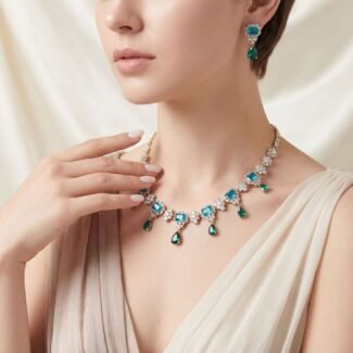 Conjunto de Collar y Pendientes para Novias – Pendientes de Borla de Circonita de Lujo Populares en Europa y América – Joyería de Moda para Noches y Uso Casual