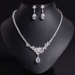 Este conjunto de dos piezas, compuesto por un collar y aretes con forma de lágrima, está elaborado con circonita y presenta un diseño sofisticado, exagerado y retro, lo que lo convierte en una excelente opción como accesorio de moda femenina.