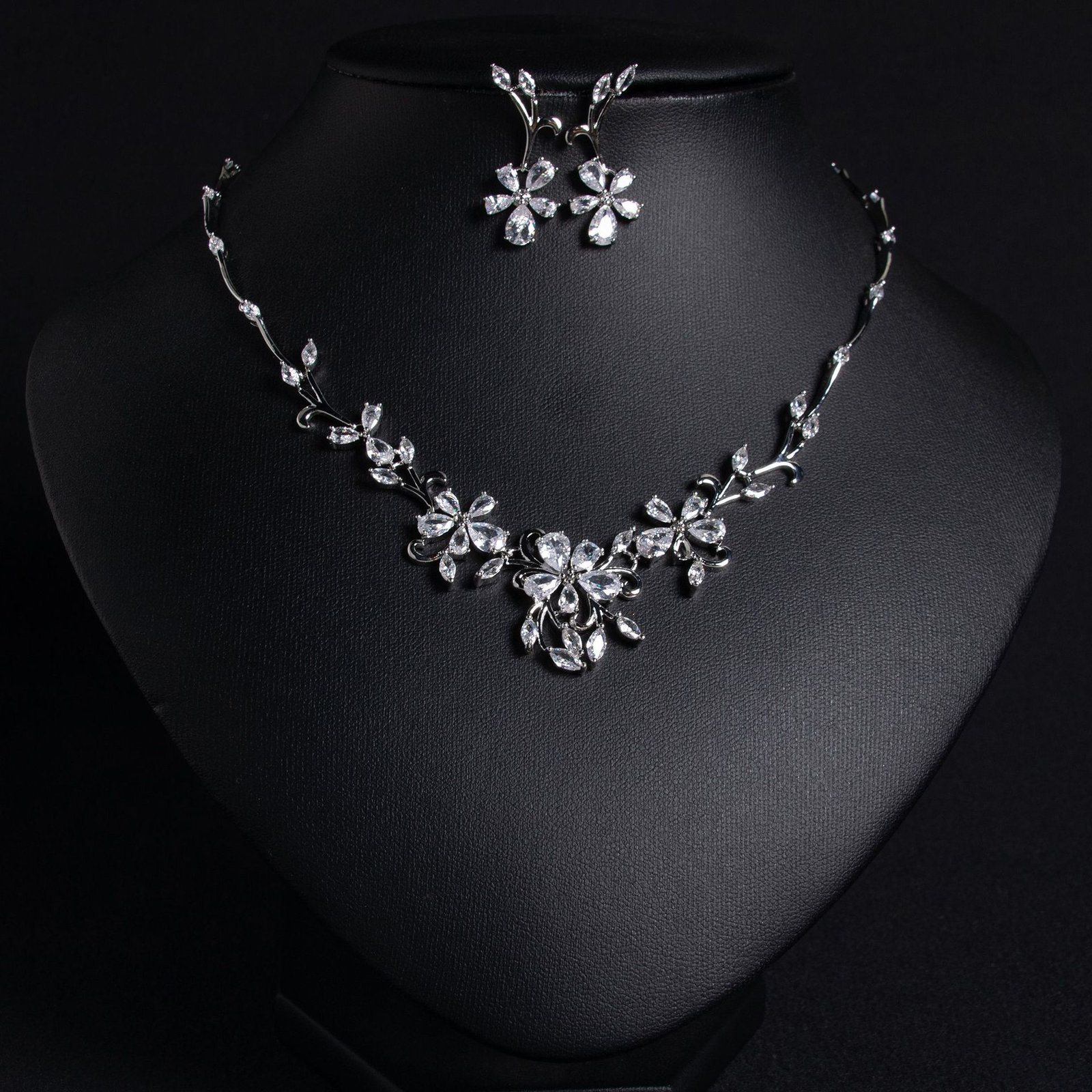 Ensemble de collier de mariée en zircon avec motif de vigne florale, accessoires polyvalents, pétales rafraîchissants et épurés