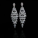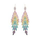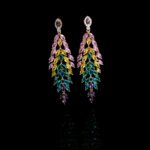 Boucles d'oreilles longues à franges en argent sterling S925 avec zircon coloré à jour.
